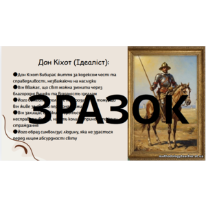 Презентація: Дон Кіхот і Санчо Панса – вічні образи, в яких утілено високу мрію і прагматизм. «Донкіхотство». Широта філософського змісту твору