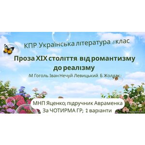 КПР. Українська література. 8 клас. "Проза ХІХ століття: від романтизму до реалізму" за ЧОТИРМА ГР (МНП Яценко, підручник Авраменка) 2 варіанти
